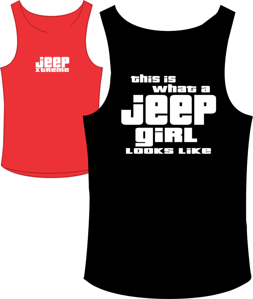This is what a jeep girl looks like tank is printed front and back on a super soft ladies tank top...
